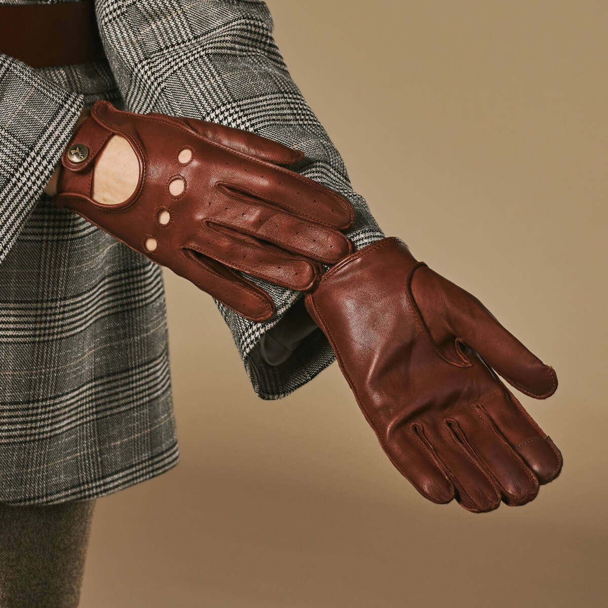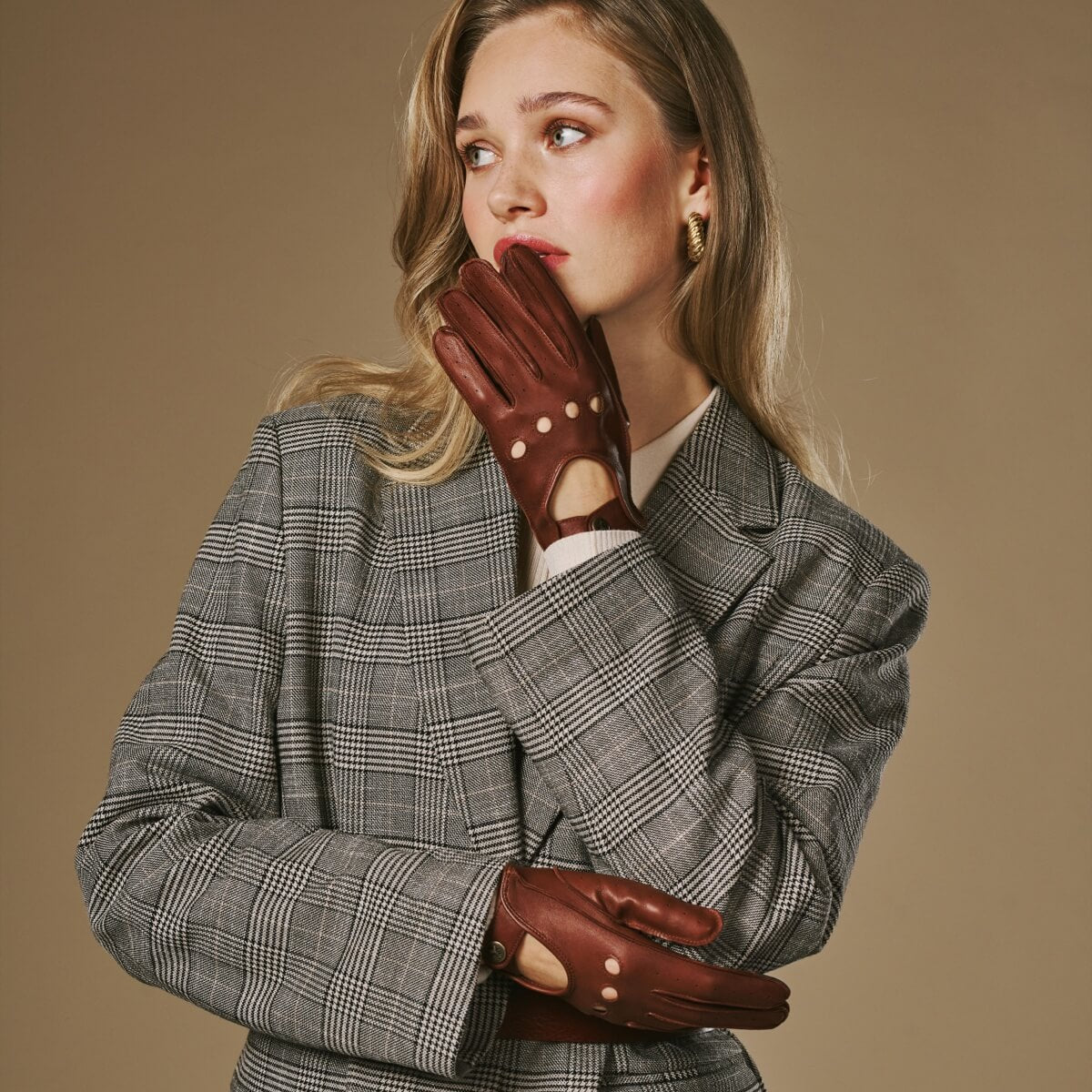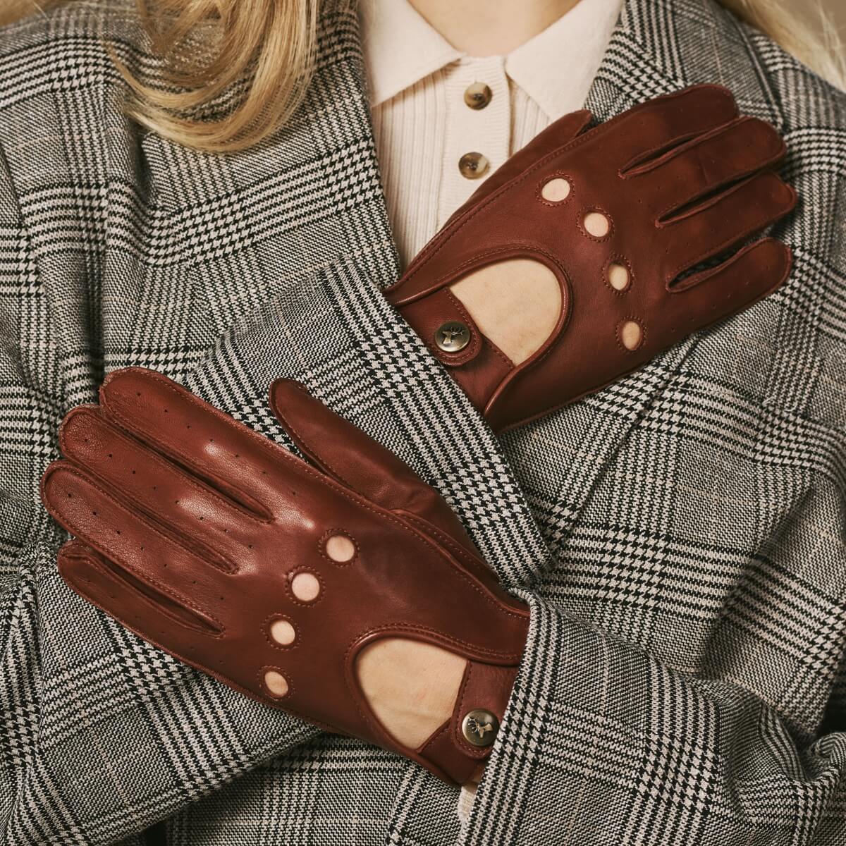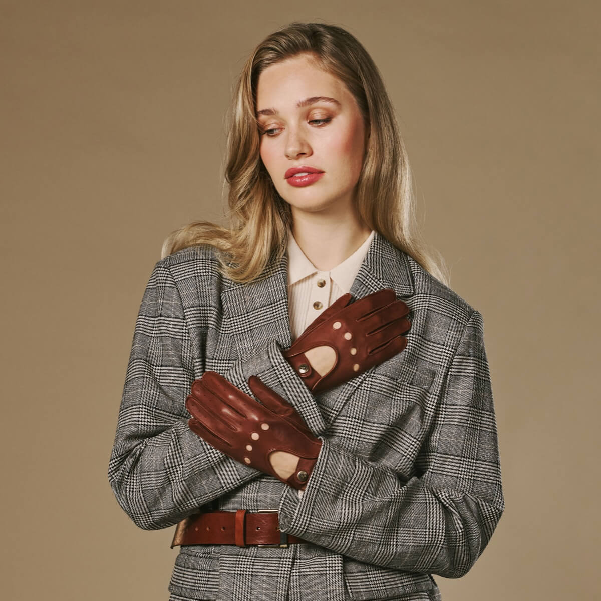 Alexis (cognac) – Classic women's lambskin driving gloves with touchscreen feature