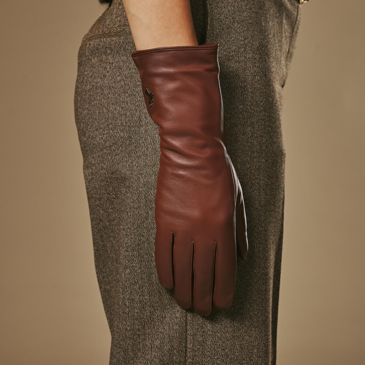Długie damskie skórzane rękawiczki z luksusową podszewką z wełny/kaszmiru (przystosowane do obsługi ekranu dotykowego) |