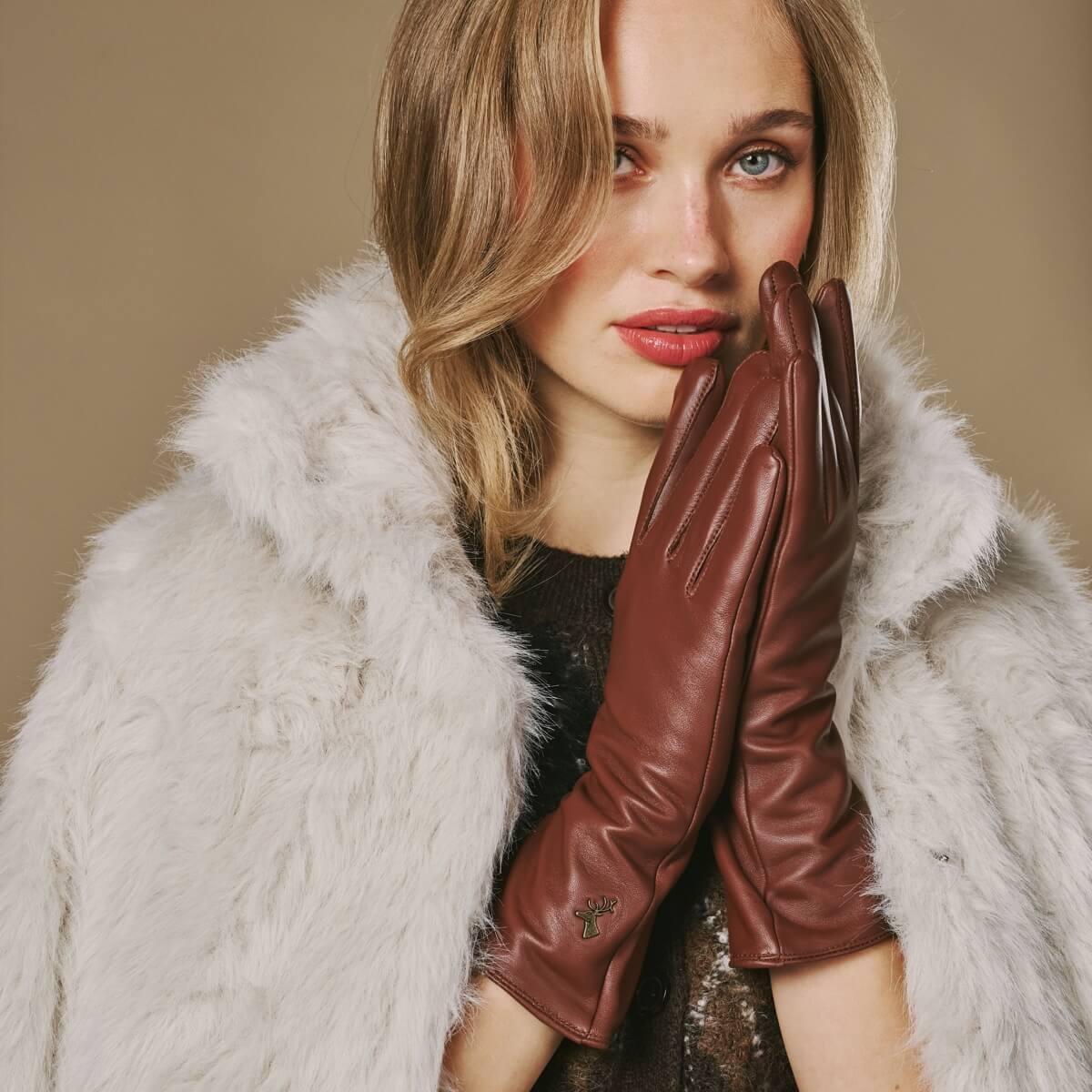 Emma – długie rękawiczki z owczej skóry z podszewką z wełny/kaszmiru, przystosowane do obsługi ekranu dotykowego