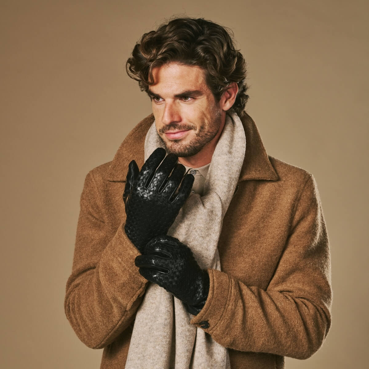 Frederick (black) - Basketweave pattern gloves with wool lining and touchscreen feature