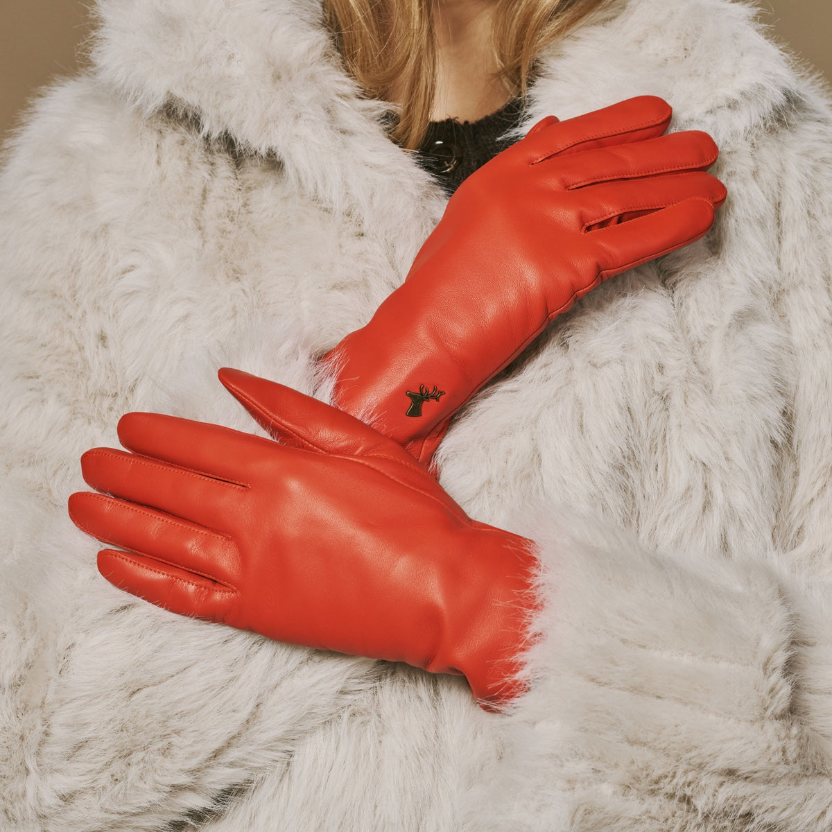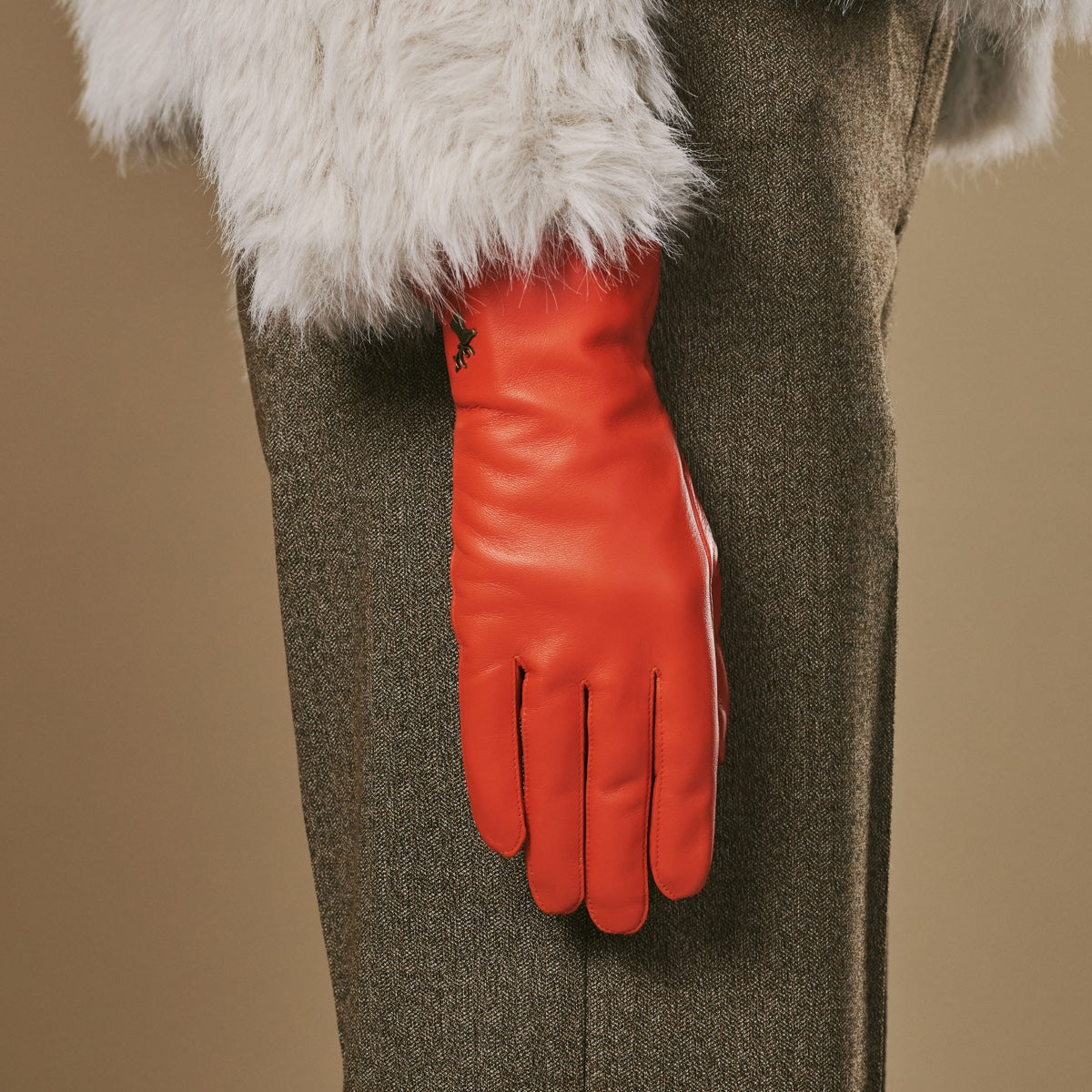 Women's Leather Gloves - Orange - Cashmere - Touchscreen – Schwartz & von Halen®