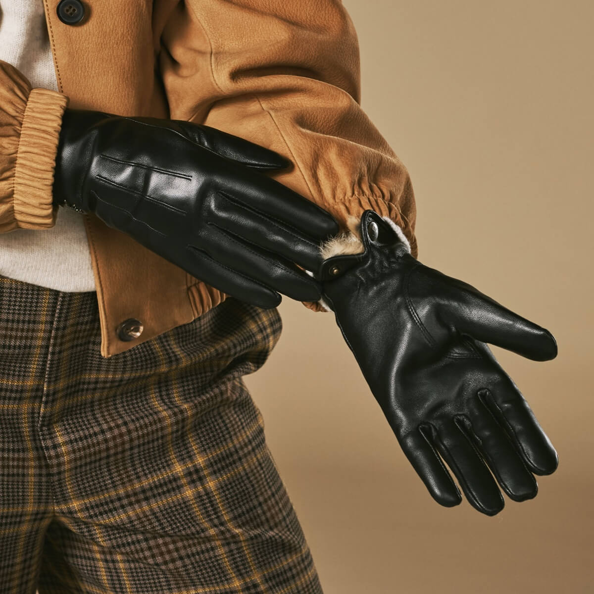 Jasmine (black) - Women’s lambskin gloves with luxurious rabbit fur lining and touchscreen feature