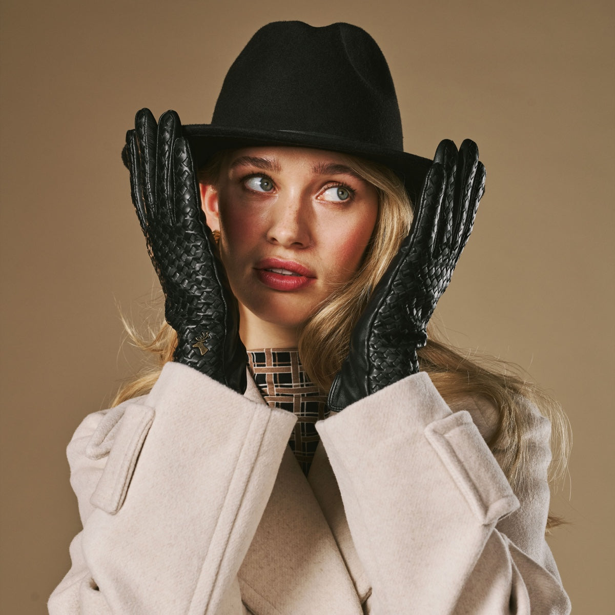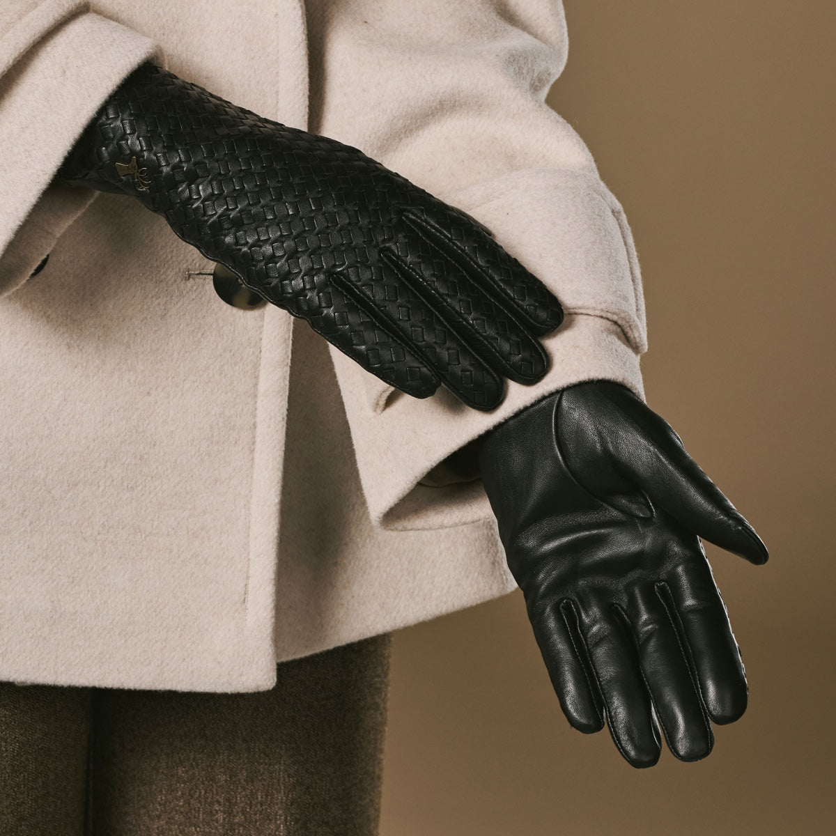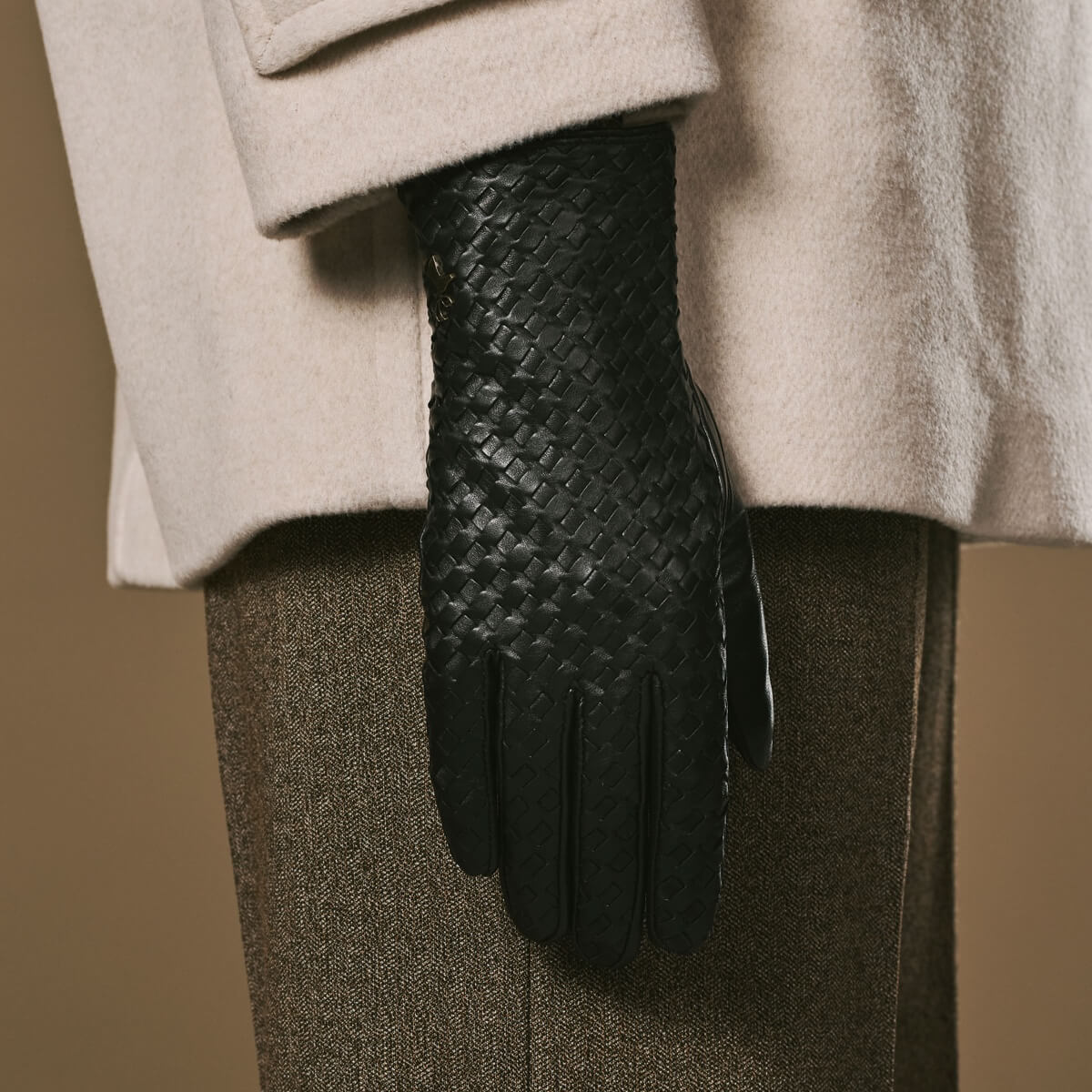 Josephine (black) – Basketweave pattern gloves with wool lining and touchscreen feature