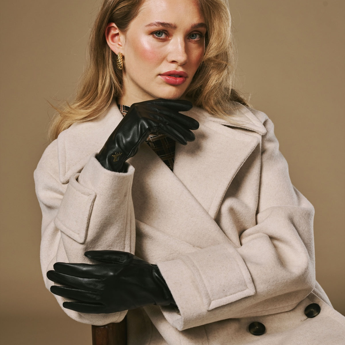 Lauren (black) - Women’s lambskin leather gloves with silk lining and touchscreen feature