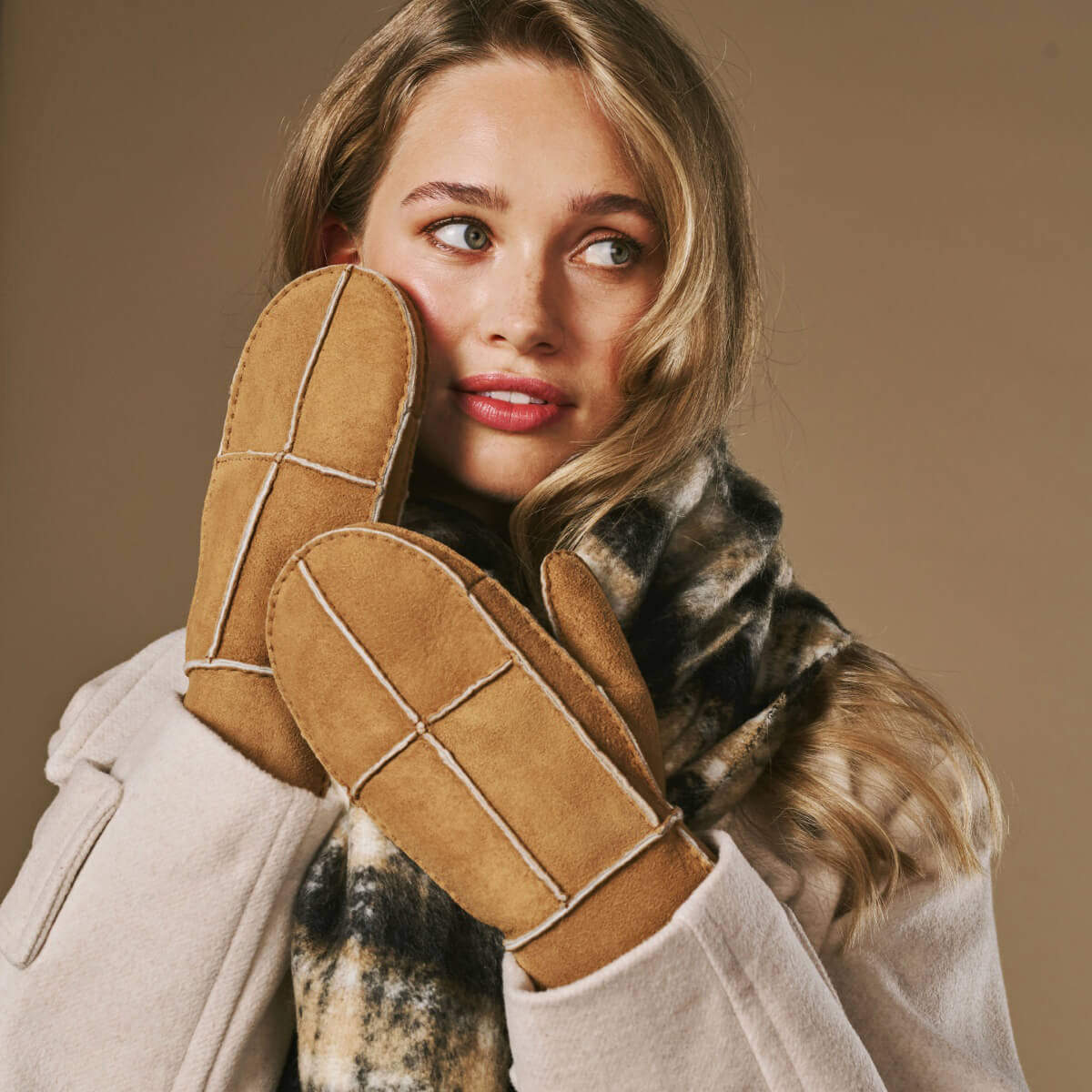 Practical warmth: Veronica is a women’s mitten from Schwartz & von Halen, made from durable sheepskin patches with a soft suede finish on the outside. Strong and hard-wearing, these mittens are built for everyday winter use.