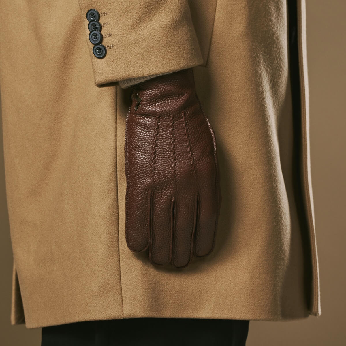 Timeless design: Charles is one of the most exclusive men’s gloves in the Schwartz & von Halen collection. Handcrafted from rich American deerskin, these elegant gloves offer both rugged durability and refined style. The natural grain of the leather gives each pair its own unique character.