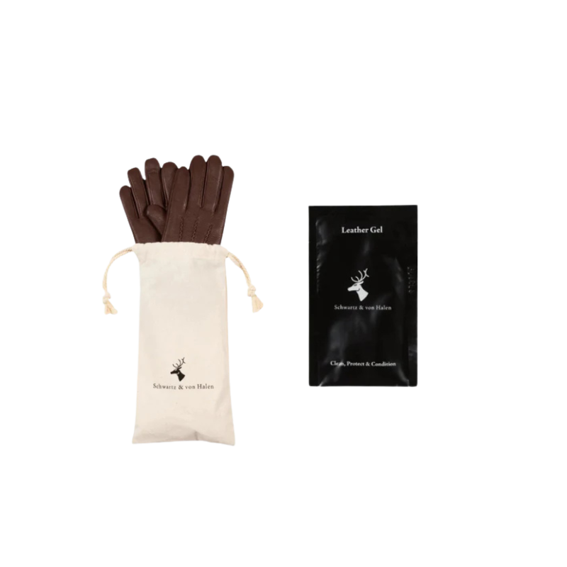 - All Schwartz & von Halen gloves include a complimentary leather gel and a luxurious cotton pouch.